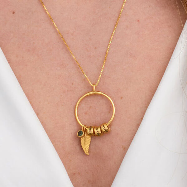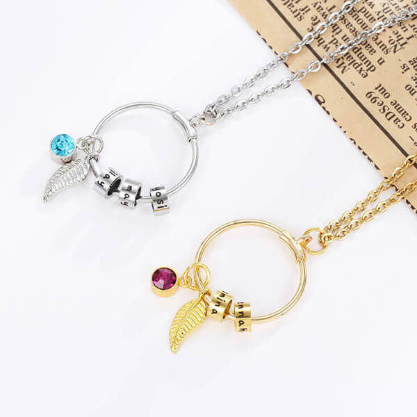 Celebrate everlasting love or life long friendship with the Beads Leaf Circle Pendant Necklace with Birthstones. Personalize this graceful necklace with names and corresponding birthstones, or with meaningful words and birthstones in the colors you like best. Whether you are commemorating love or friendship, you’ll appreciate the way a stylish