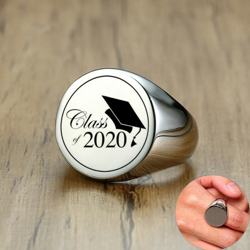 This Custom Chunky Round Top Signet Ring Men Stamp Fraternal Punk Heavy Graduation Gift is made of High Quality Stainless Steel. You can upload a file including the logo (the color only black,silver or grey) and text you design to engrave or only add the text you want to engrave on the flat top surface of the ring. Come and customize a personalized ring for yourself or the one you love.