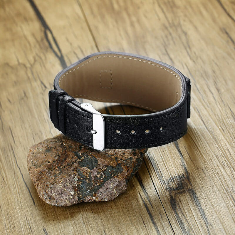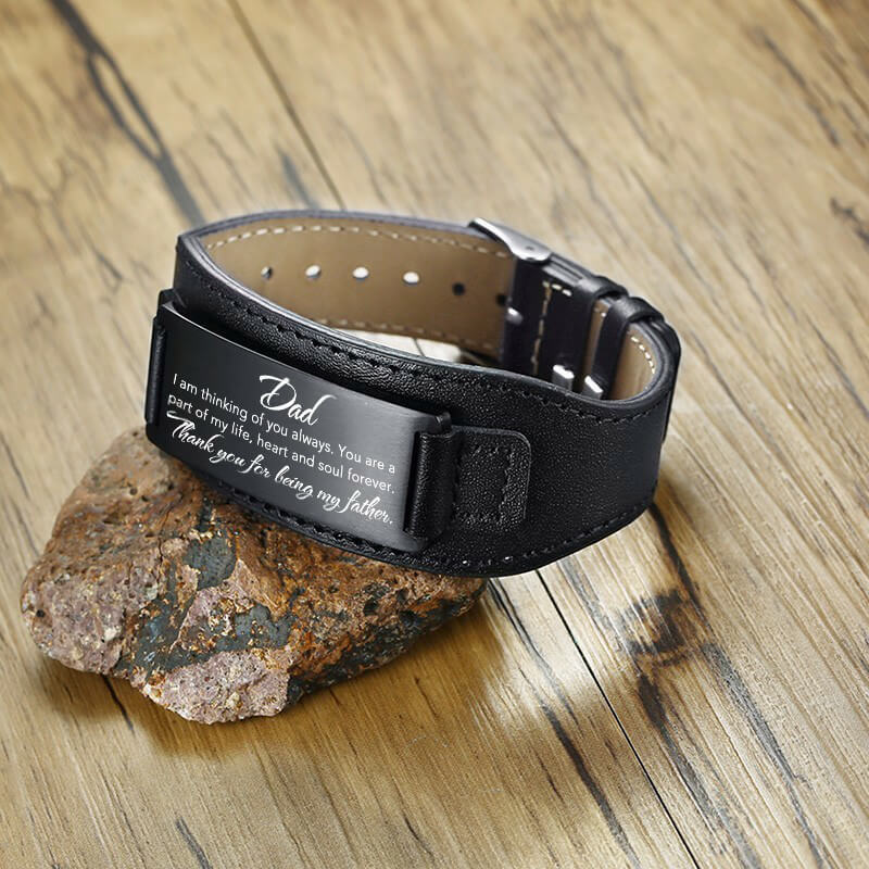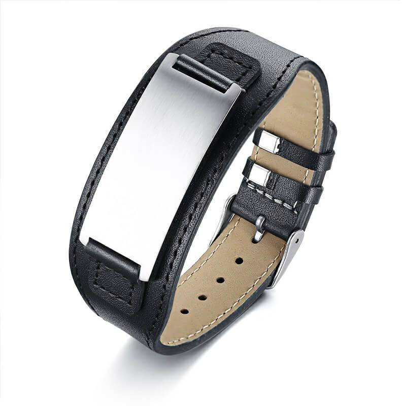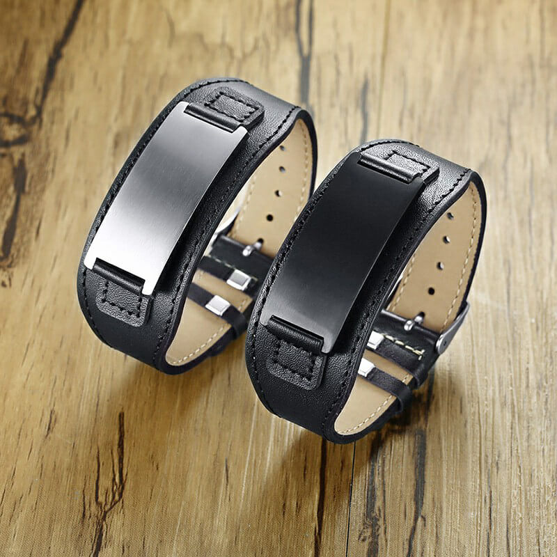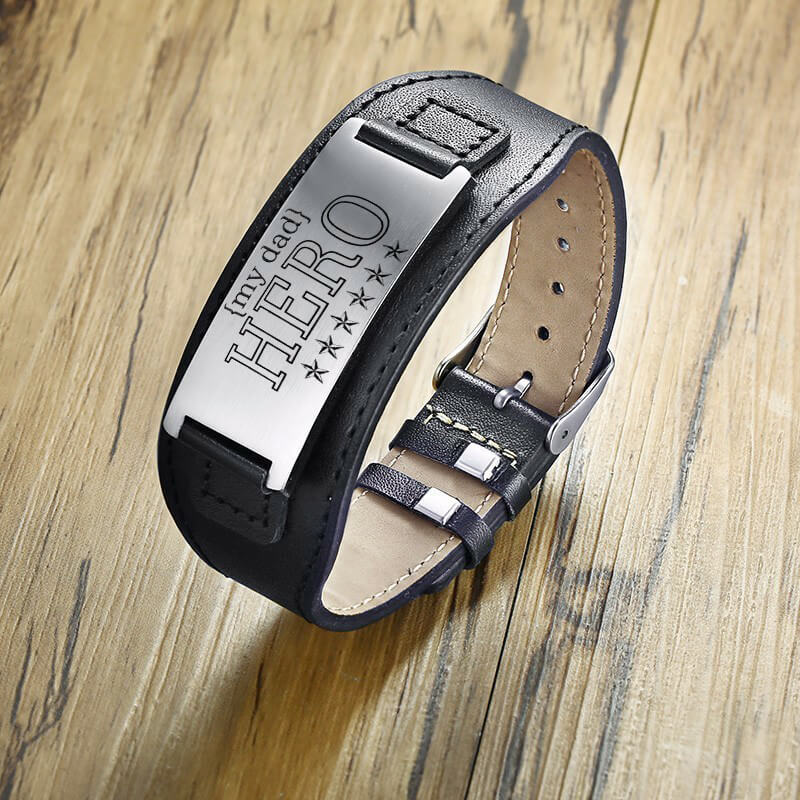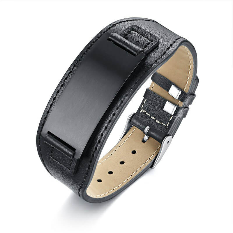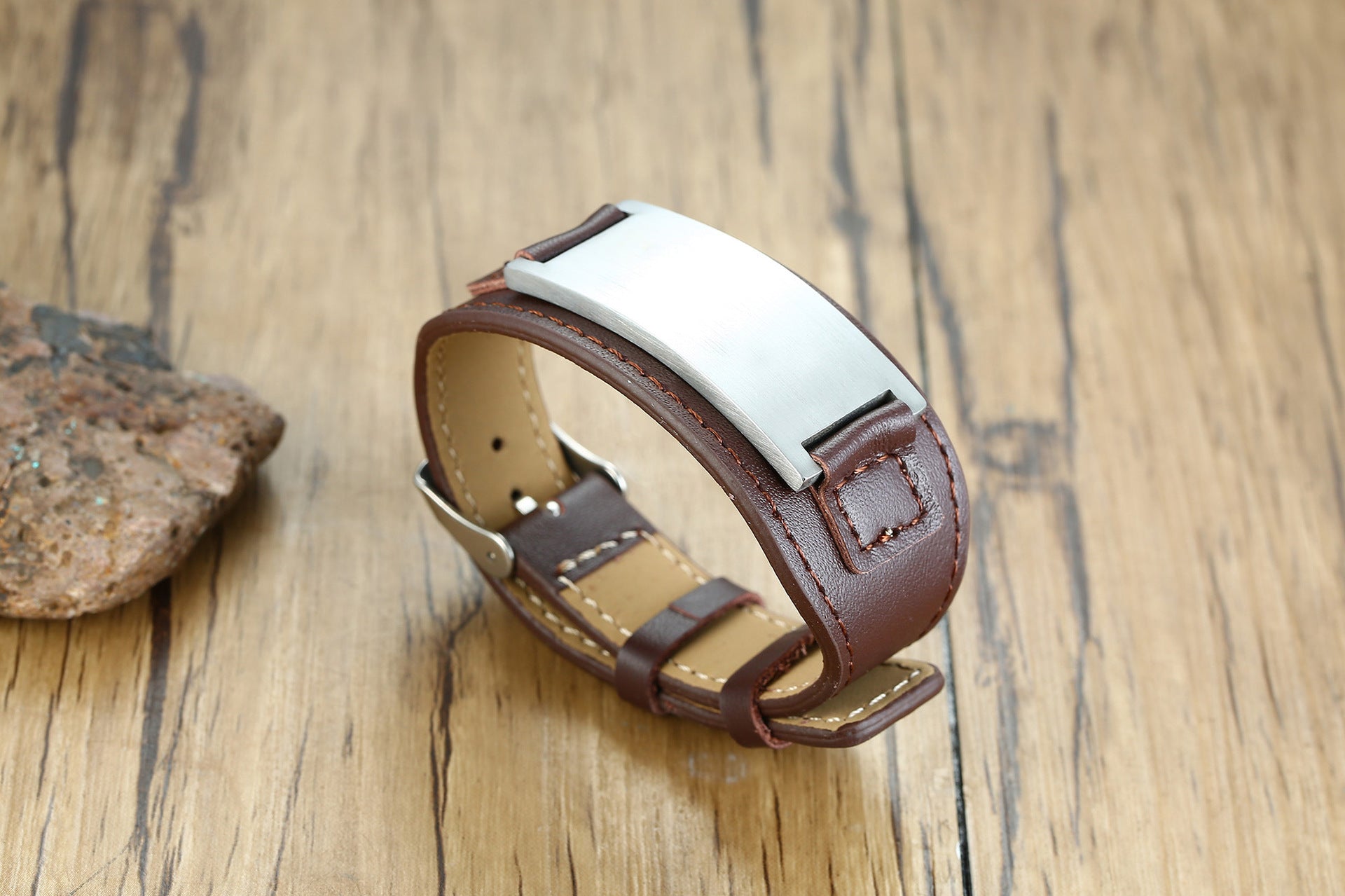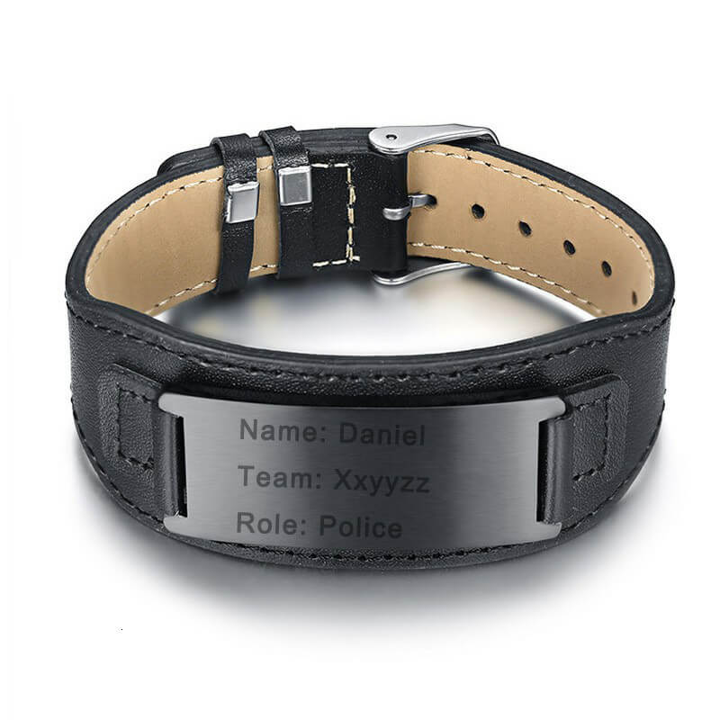 This Customized Genuine Leather Wraps Bracelet for Men Woman ID Bangle Adjustable is made of High Quality Stainless Steel and Leather. You can upload a file including the logo (the color only black,silver or grey) and text you design to engrave or only add the text you want to engrave on the frontside of the ID Tag. Come and customize a personalized Bracelet for yourself or the one you love.