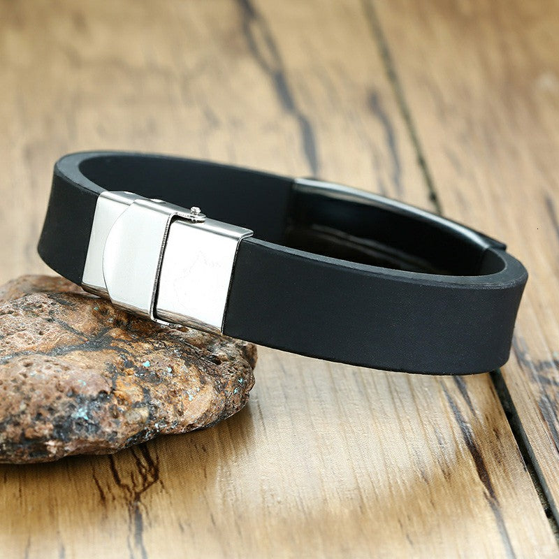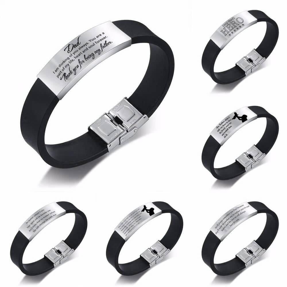 Father’s Day Gift to Dad ID Bar Silicone Bracelet for Men Customized Bangle Bracelet
