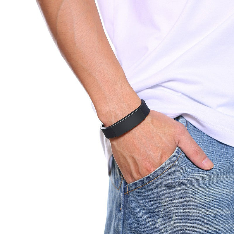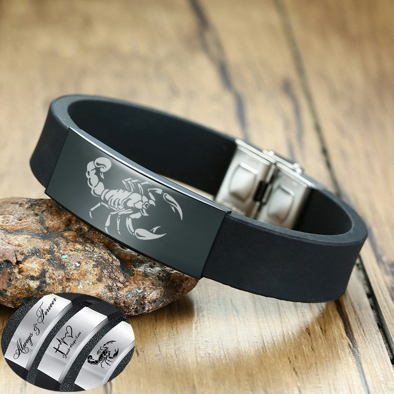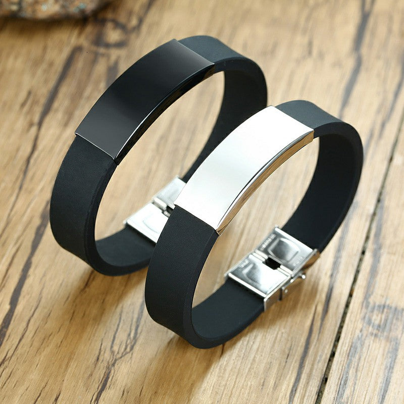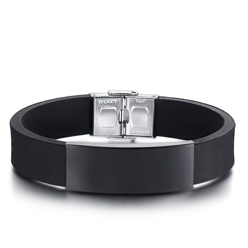 This Father’s Day Gift to Dad ID Bar Silicone Bracelet for Men Customized Bangle Bracelet is made of Silicone+Stainless Steel. You can upload a file including the logo (the color only black,silver or grey) and text you design to engrave or only add the text you want to engrave on the ID Tag of the bracelet as a personalized gift for yourself or the one you loved.Come to engrave now.