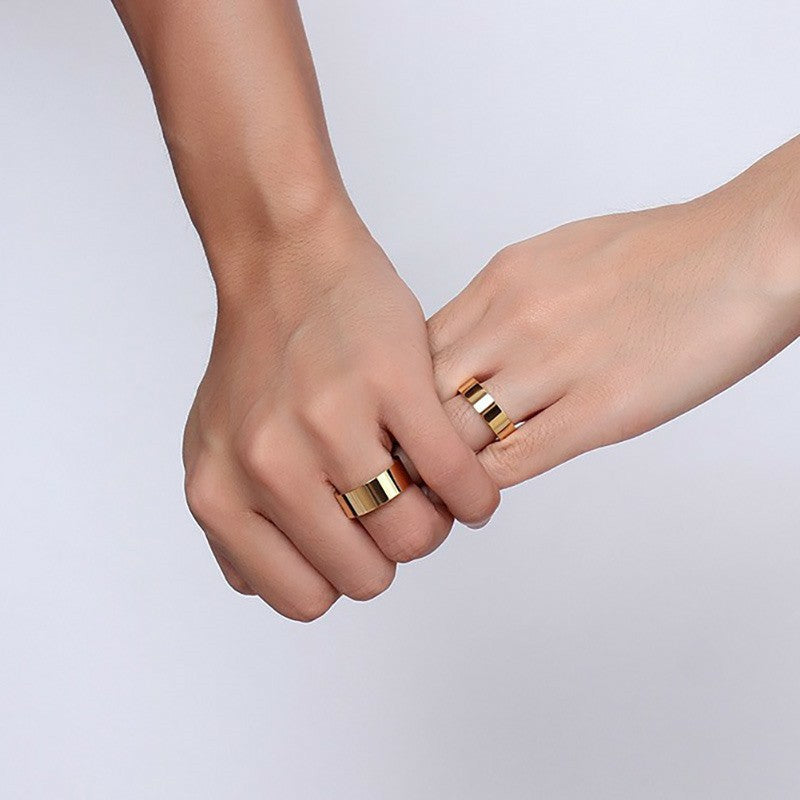 This Gold Personalize His and Hers Wedding Ring Engagement Rings for Women and Men is made of High Quality Stainless Steel. You can engrave with a name, phrase or date of your choosing inscribed inside the ring and engrave on the outside is optional.