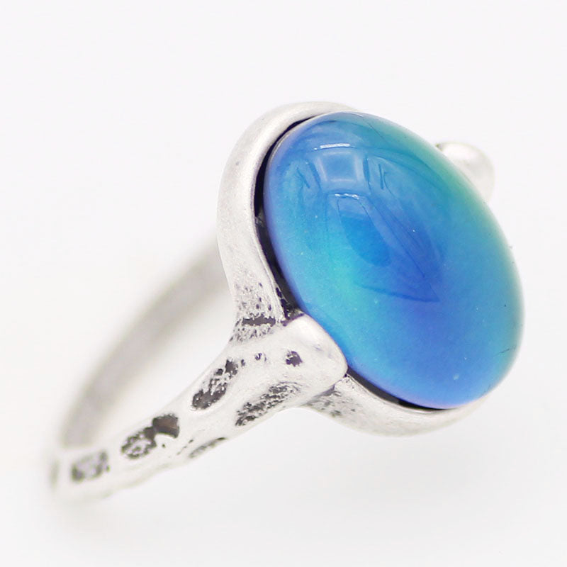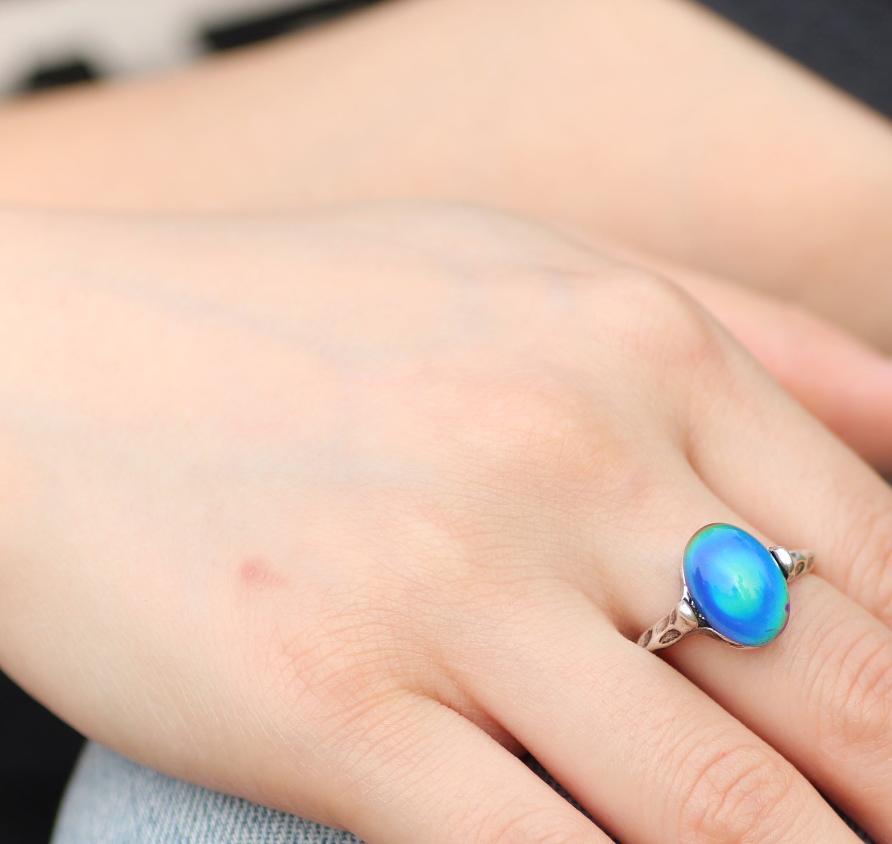 Handmade Mood Ring, Oval Shape Mood Stone Ring, Antique Silver Plated Ring, Color Changing Mood Ring, Size 7 8 9, Mood Reading