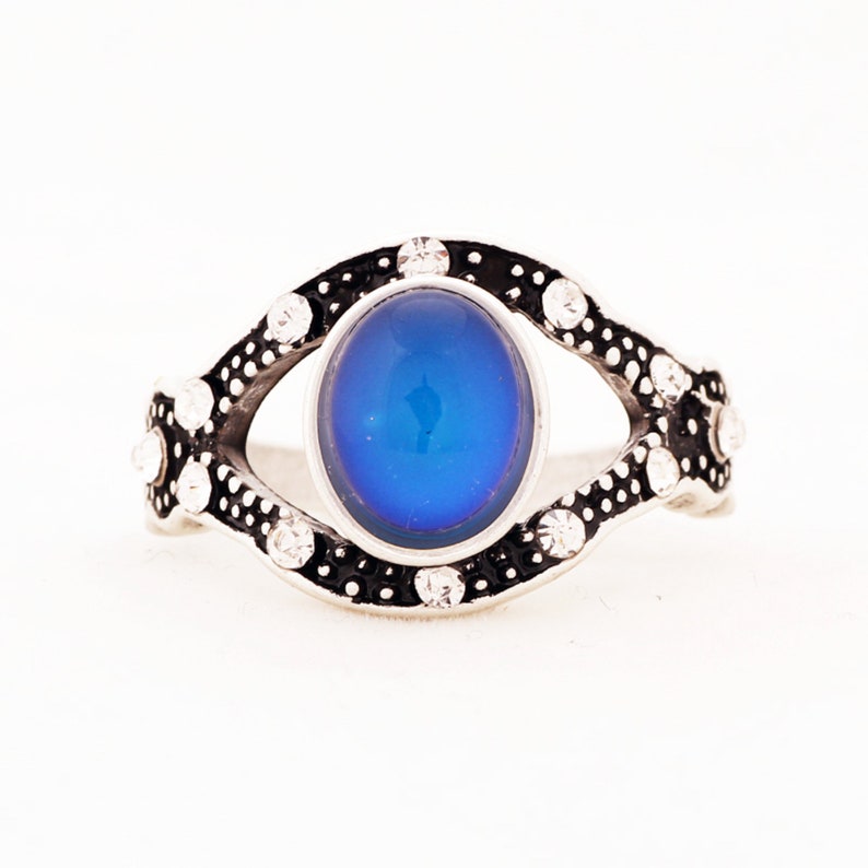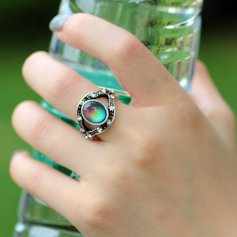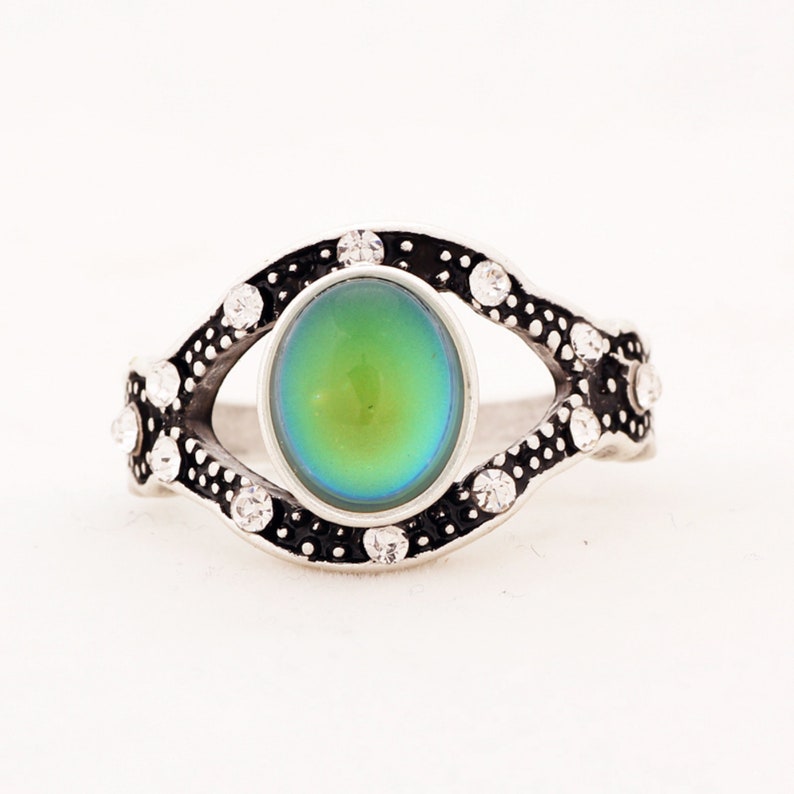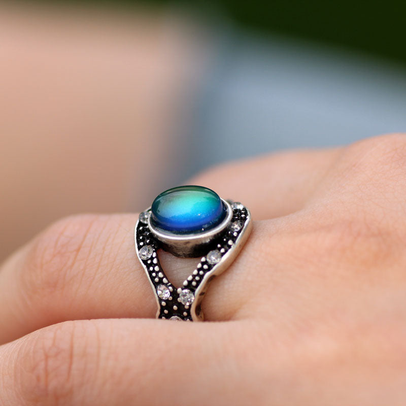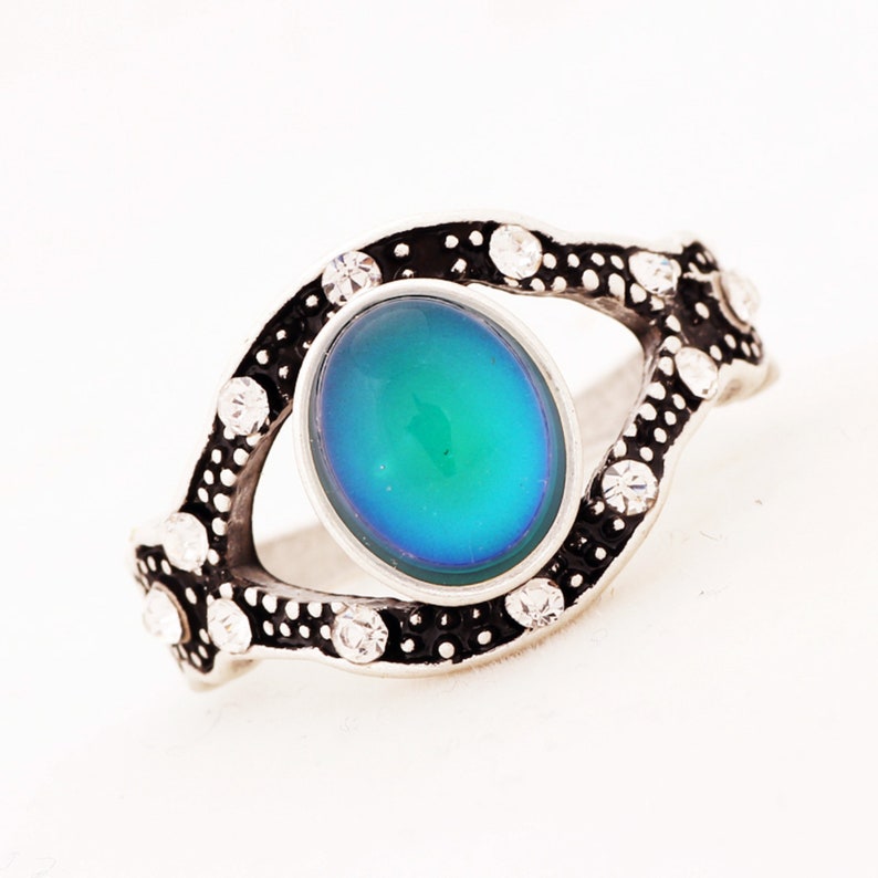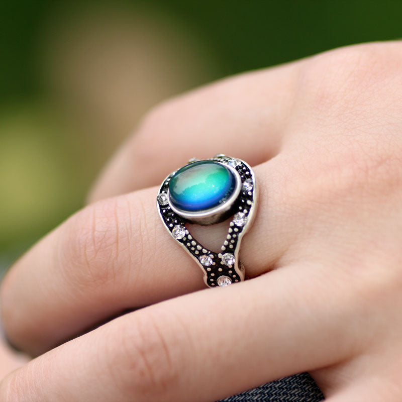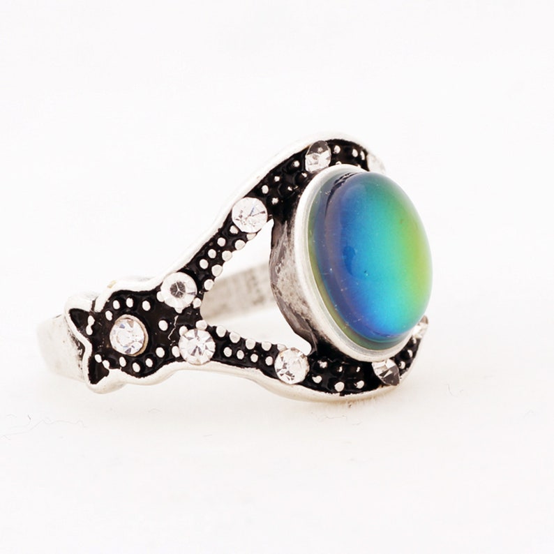 Handmade Mood Ring, Oval Shape Mood Stone Ring, Antique Silver Plated Ring, Emotion Feeling Changeable Ring,Mood Reading Ring for Women