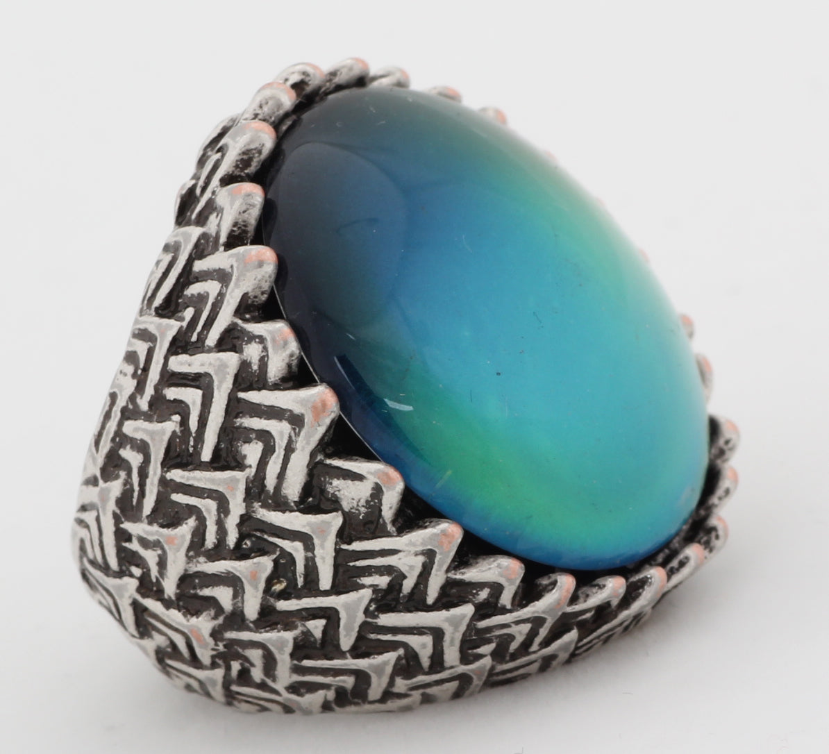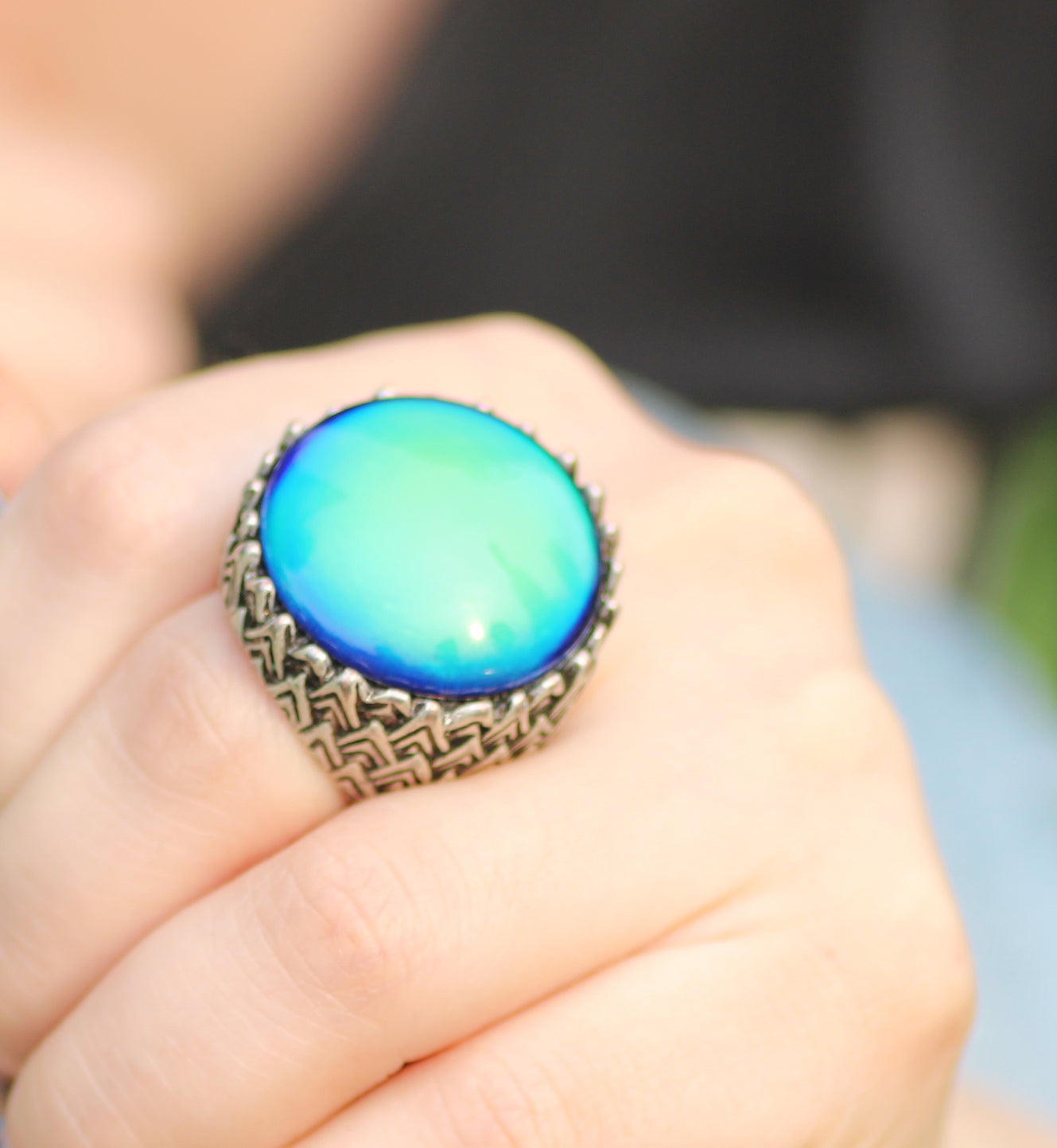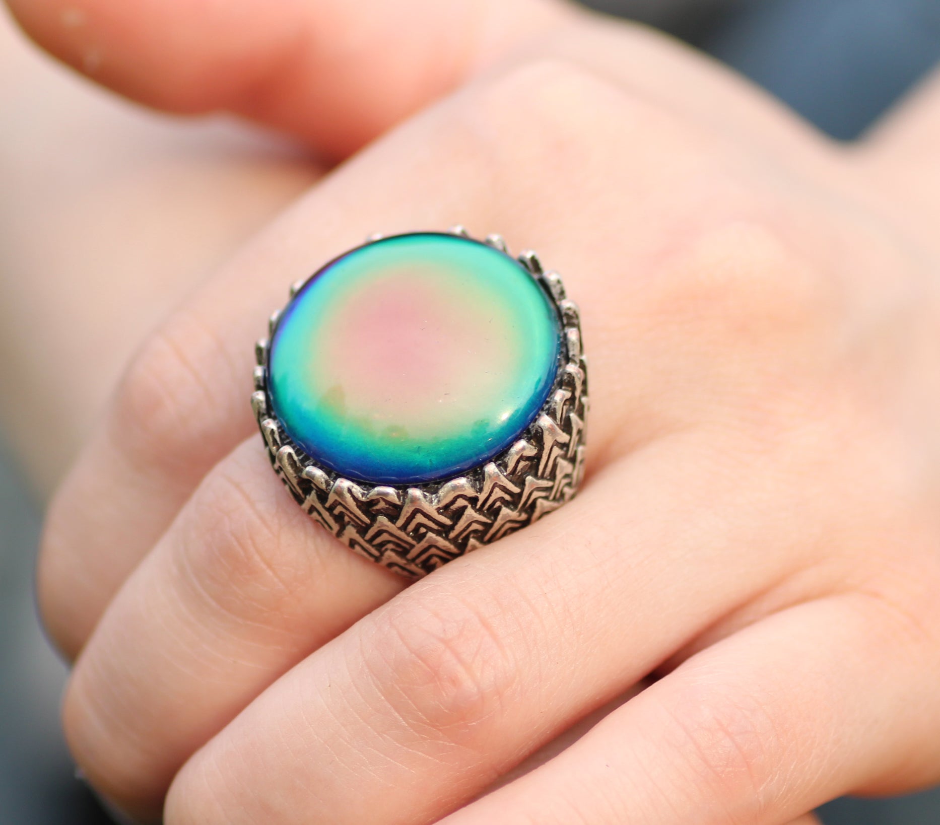 This is a retro real mood ring! This mood stone will change to a variety of colors based on your body temperature and ‘mood’.