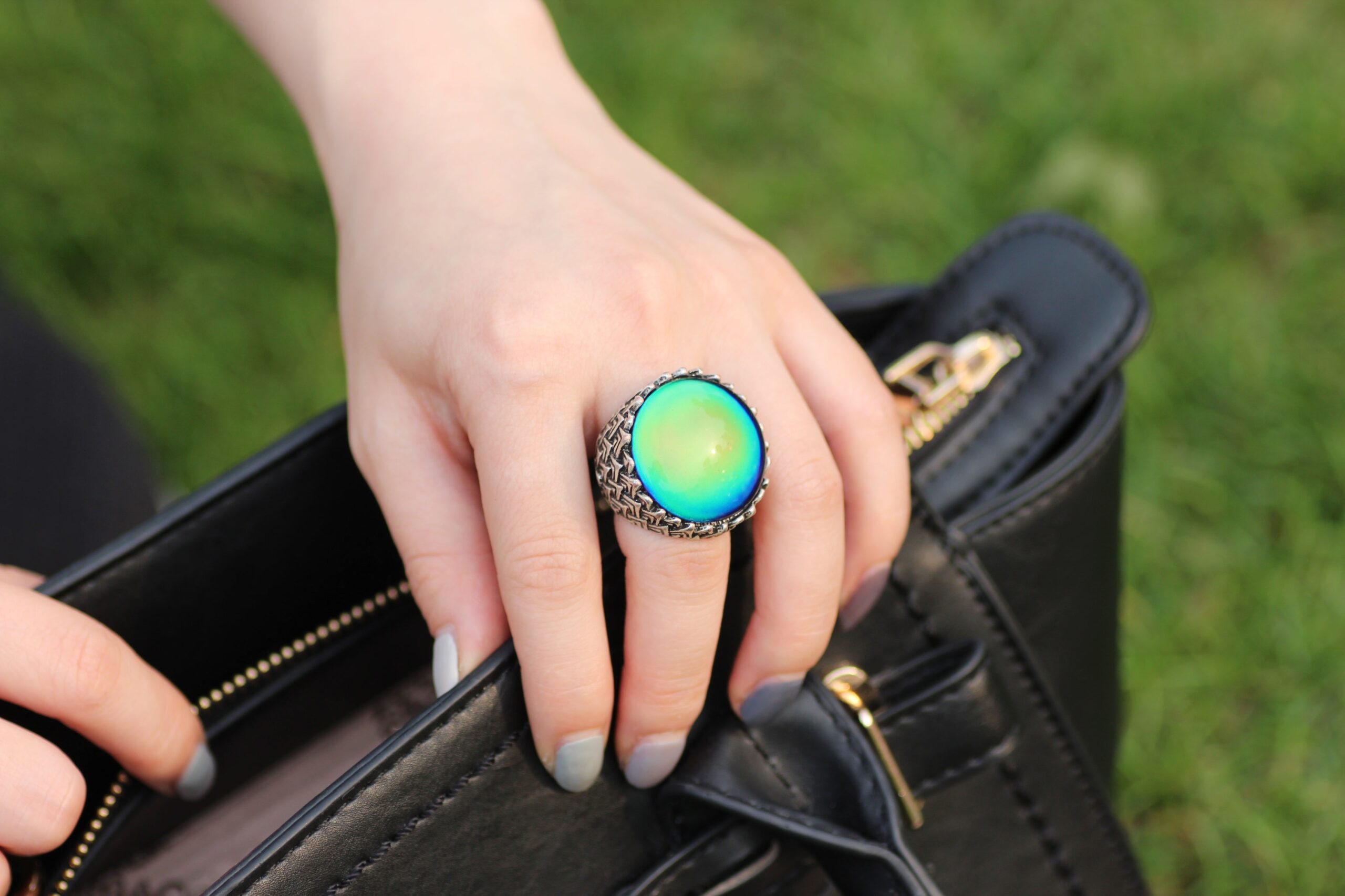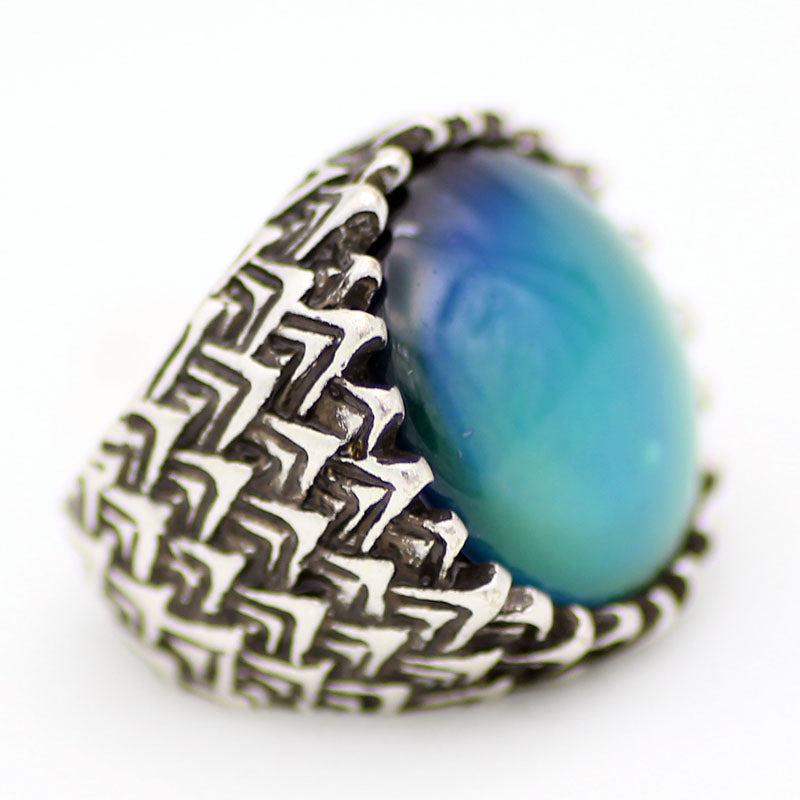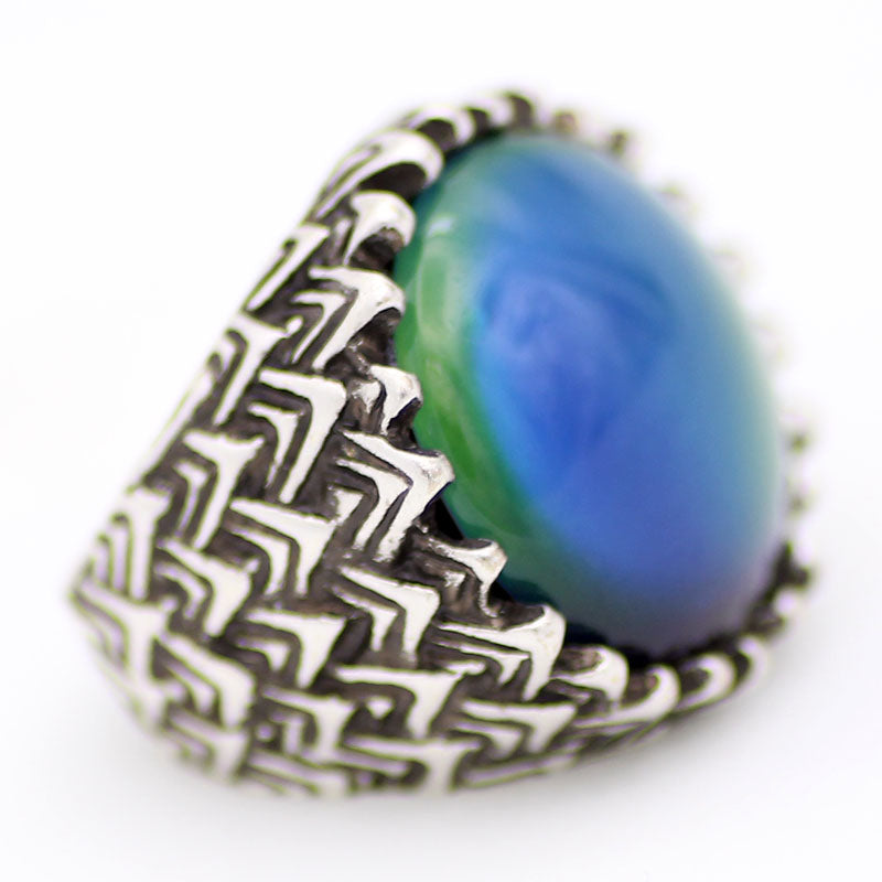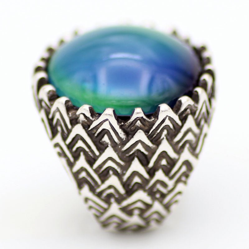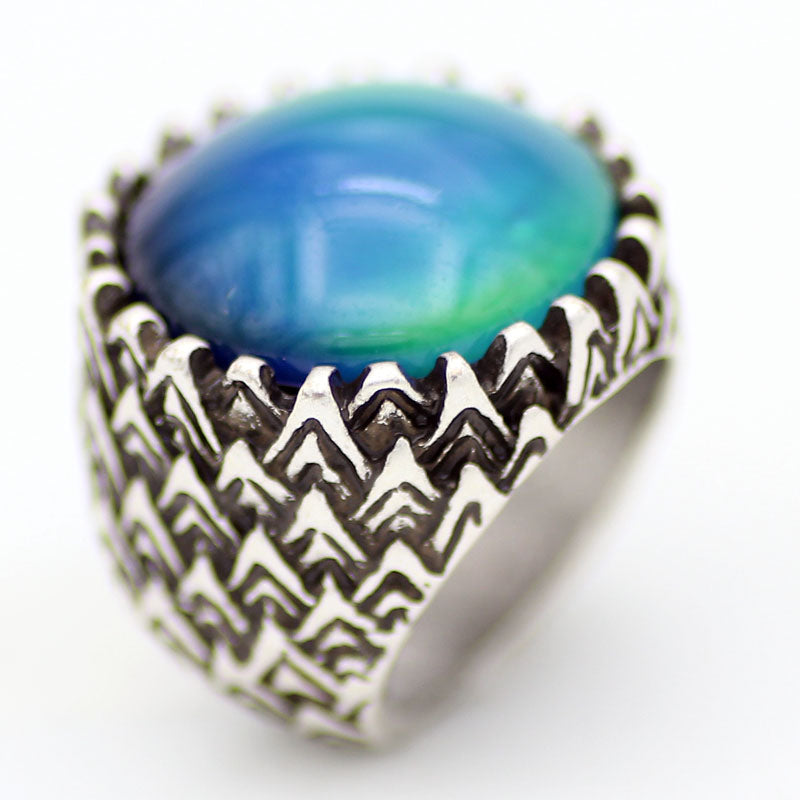 This is a retro real mood ring! This mood stone will change to a variety of colors based on your body temperature and ‘mood’.