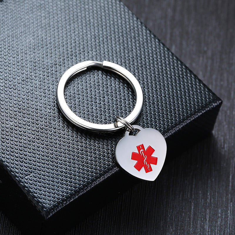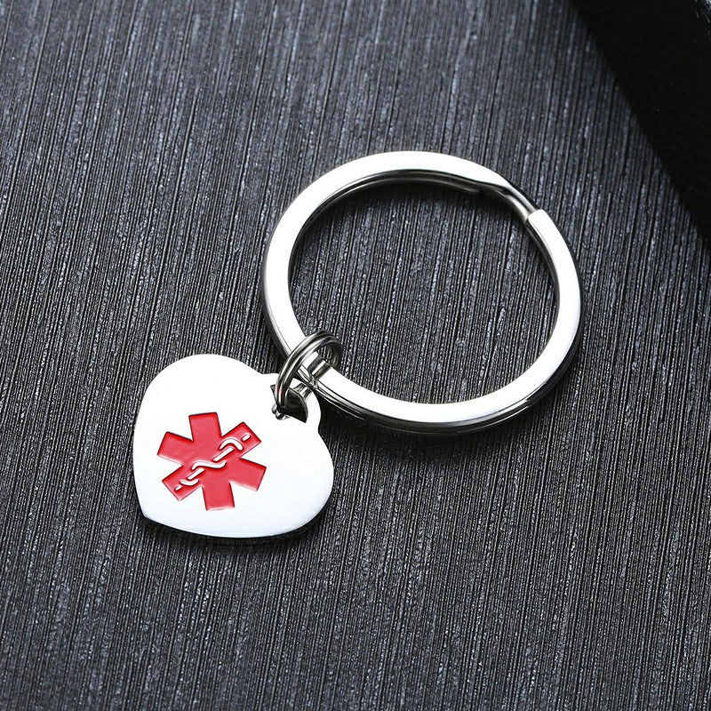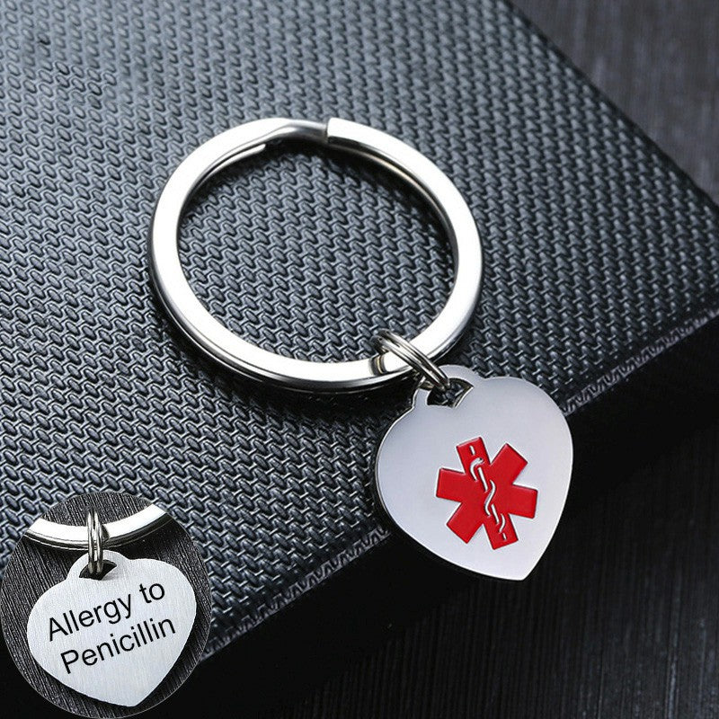 Medical Heart ID Charm Key Chain Anti Allergy Stainless Steel Personalize Emergency Reminder