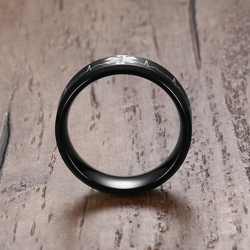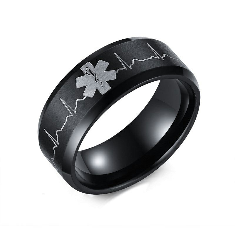 You will feel at ease to choose a medical ID ring for your loved one whose has a life threatening condition, such as diabetes, epilepsy, allergies, and other disorders. Having the silver color caduceus on the surface of the ring,you can engrave on the internal of the ring with the medical alert information you want,So go ahead and personalize today!