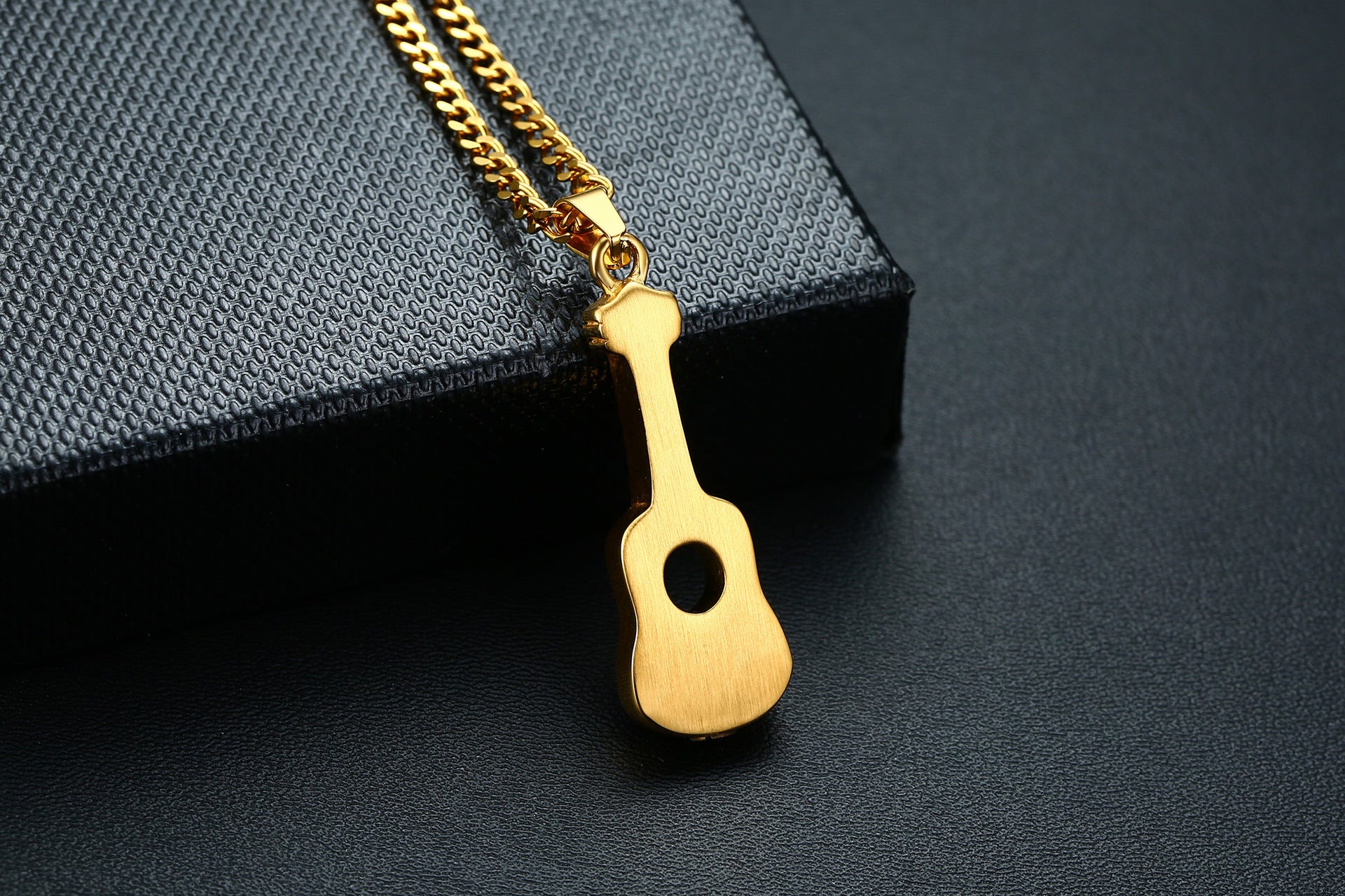 Guitar Pendant Personalized Necklace Cremation Urn For Ashes Openable Love Music Jewelry features a stainless steel guitar shaped urn locket pendant.The bottom can be unscrewed using the mini screwdriver included to open the cavity,ashes are placed inside the urn ,keep your love one in your heart.You can engrave on the back to help keep memories of your loved ones near to your heart.It is aslo a best gift for anyone who love music,to girlfriend boyfriend son daughter wife husband dad mom,also suitable for any occasion,like engagement anniversary daily wear birthday gift and so on.