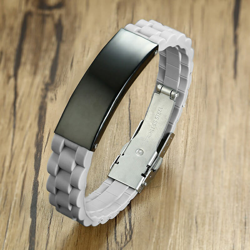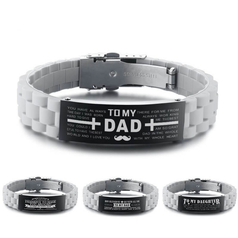 This Men’s Personalize Love to DAD Silicone Bracelets ID Tag Father’s Day Gifts is made of High Quality Stainless Steel and Silicone. You can engrave with a name, phrase or date of your choosing inscribed on the frontside of the ID Tag as a personalized gift for yourself or the one you loved.Come to engrave now.