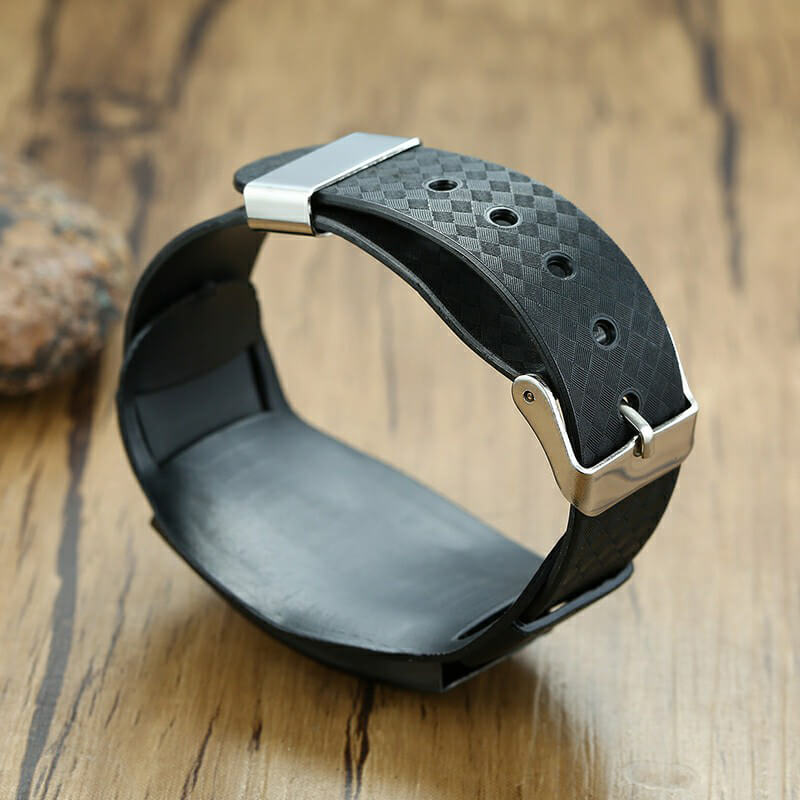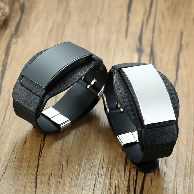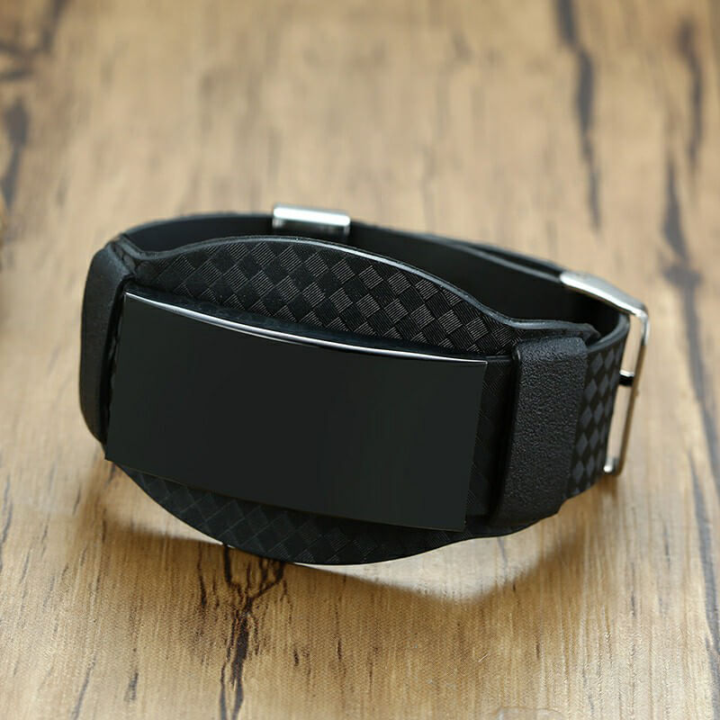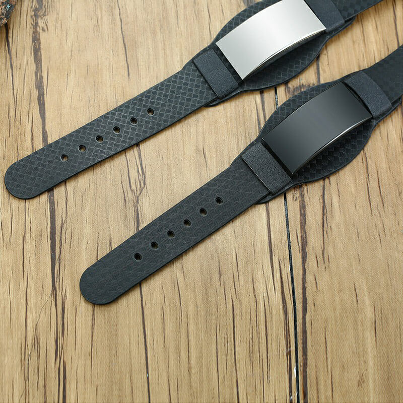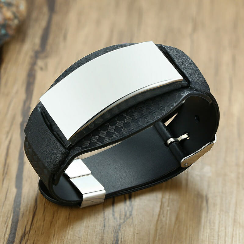 Men’s Personalize Wraps Bracelets Wristband Black Father ID Bar Bangle for Him
