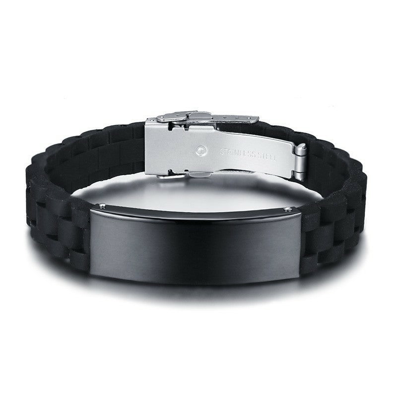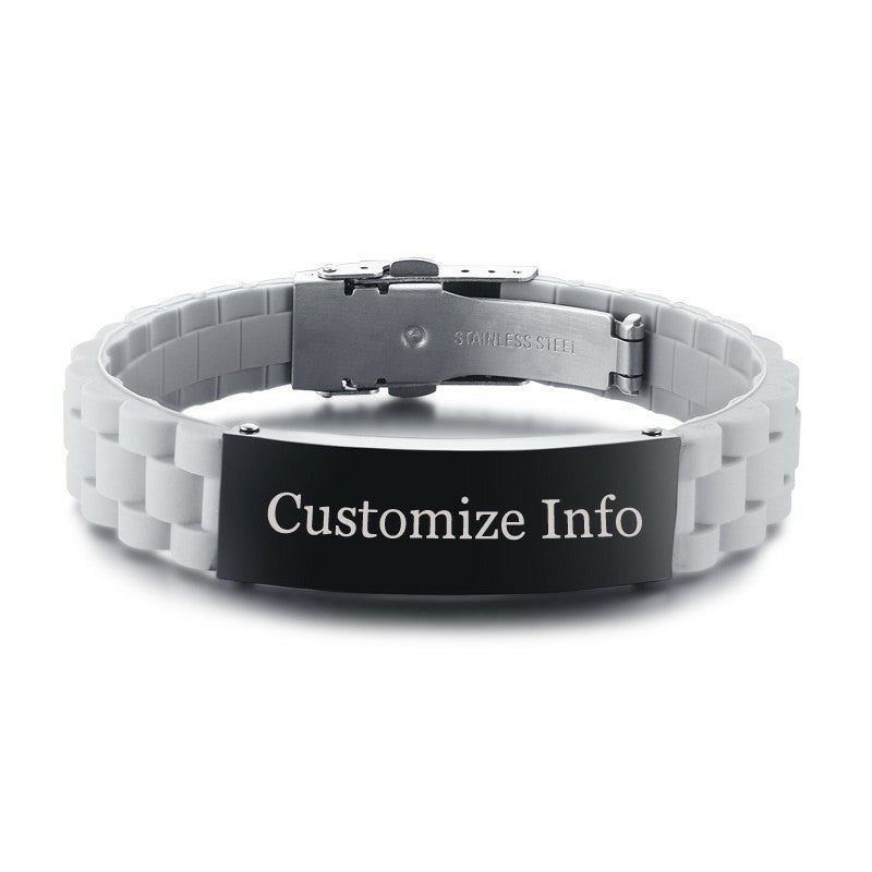 This Men’s Silicone Sport Bracelets Custom Identification Wristband Bangle Gift is made of High Quality Stainless Steel and Silicone. You can engrave with a name, phrase or date of your choosing inscribed on the frontside of the ID tag as a personalized gift for yourself or the one you loved.Come to engrave now.
