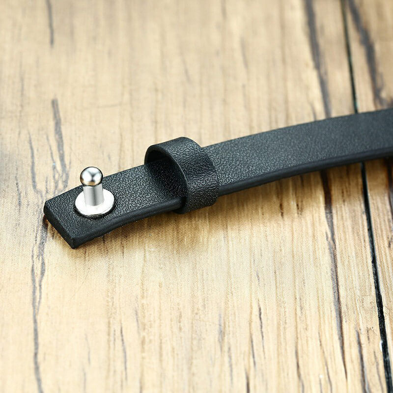 This Men’s Stylish Black Leather Personalized ID Bracelets is made of High Quality Stainless Steel+Leather. You can engrave with a name, phrase or date of your choosing inscribed on the frontside of the ID Tag as a personalized gift for yourself or the one you loved.Come to engrave now.
