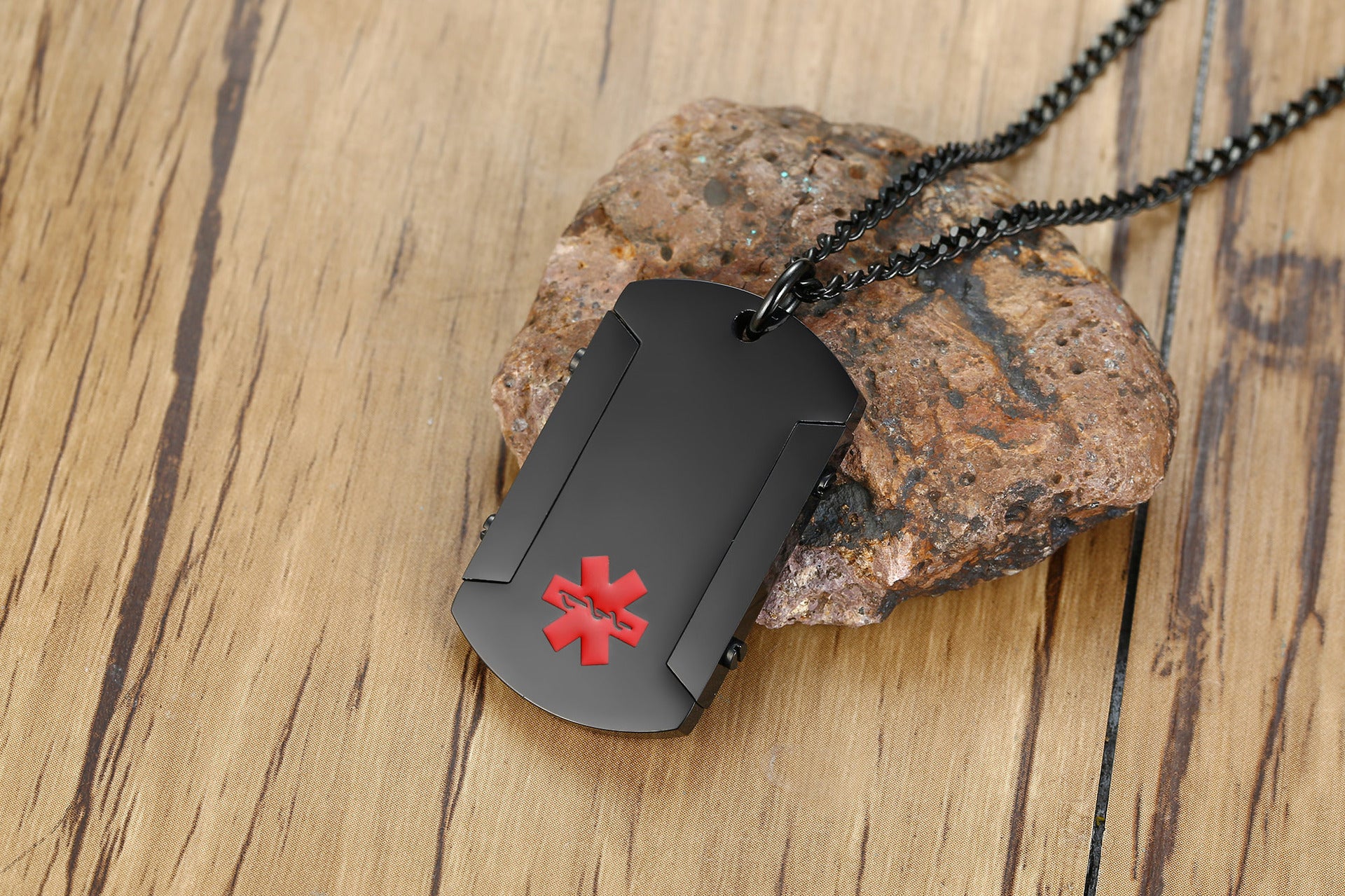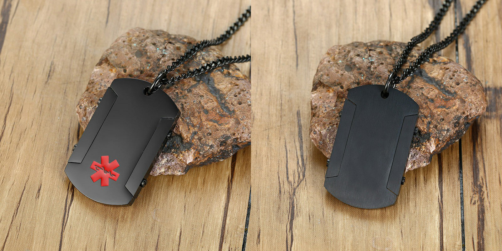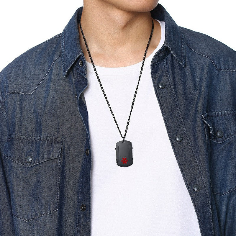 Personalize Black Medical Alert ID Pendant for Men Stainless Steel Thick Dog Tough Man Tag Necklace
