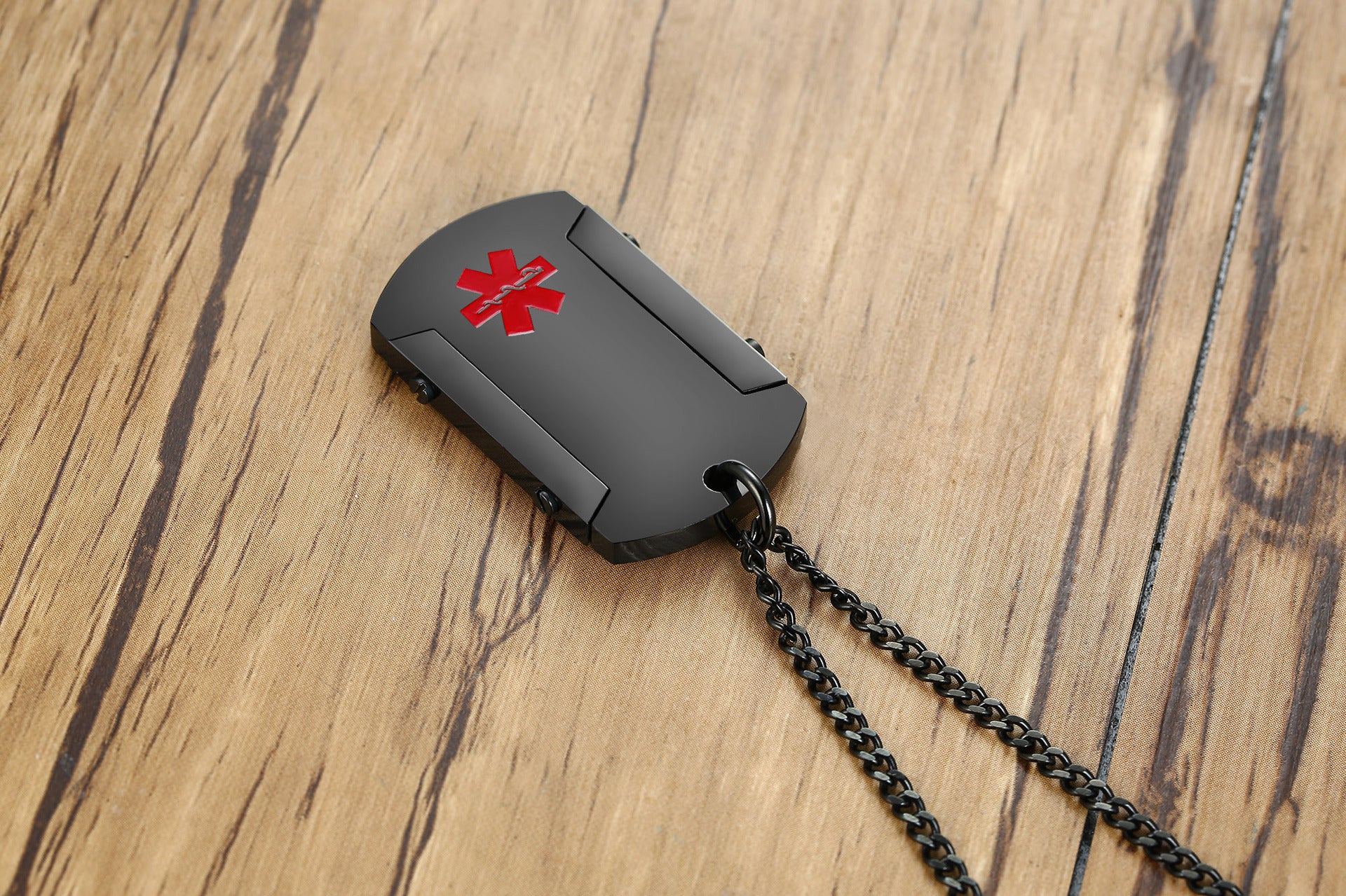 Alert the medical professionals to your special needs with this medical ID pendant. The tag in the front has a small, red medical symbol on it.You can engraved on the front and aslo the back giving you ample space to specify your needs and emergency contact info.Come to engrave now.