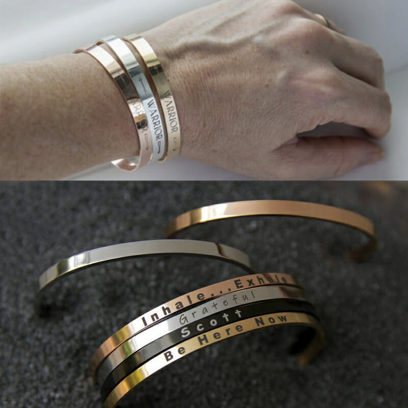 This Personalize Cuff for Women Men Lover BFF Bracelets Classic Jewelry Gift is made of High Quality Stainless Steel. You can engrave with a name, phrase or date of your choosing inscribed on the outside or the inside of the bracelet as a personalized gift for yourself or the one you loved.Come to engrave now.