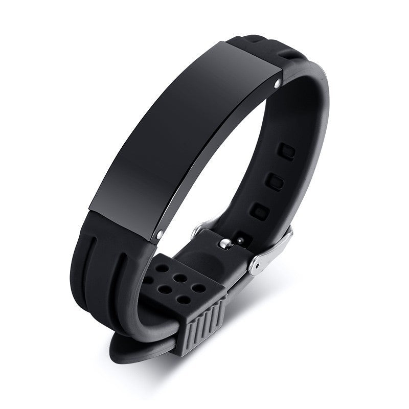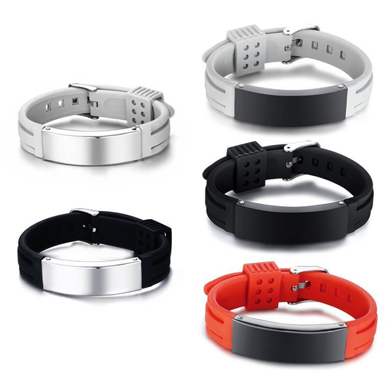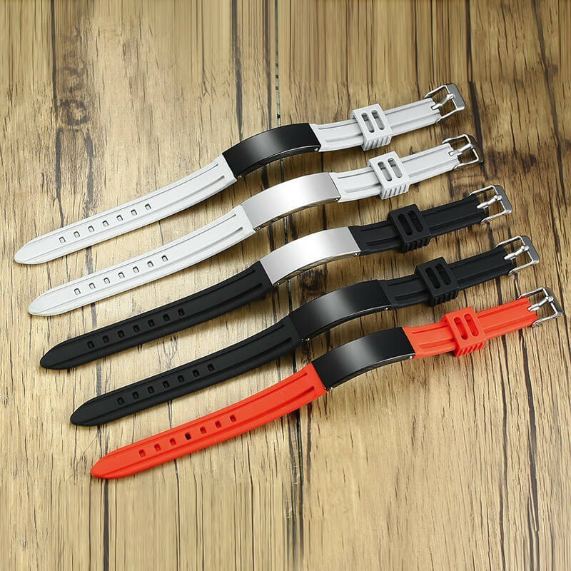 This Personalize Silicone Bracelets with ID Bar Valentine’s Day Gift for Women Men is made of High quality stainless steel + Silicone. You can engrave with a name, phrase or date of your choosing inscribed on the frontside of the ID Tag as a personalized gift for yourself or the one you loved.Come to engrave now.