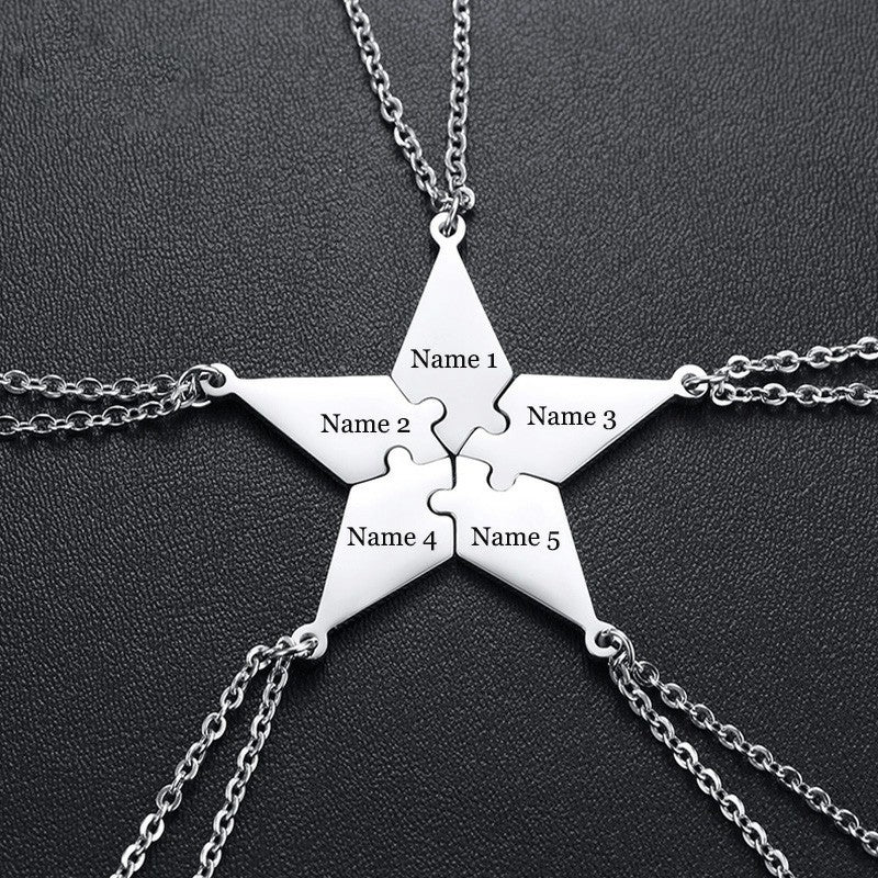 Are you looking for gifts for your friends or your family to show your love for them? Our Personalized 5 PCS/Set BFF Puzzle Pendants Necklaces for Best Friends Sisters Brothers will be your great choice.You can engrave your name and your friend’s names or family member’s names on the pendants. Come and engrave today.It will come A 5 Pcs/Set.