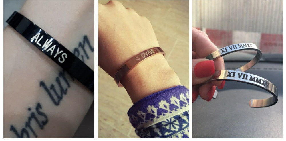 This Personalized Couple Cuff Bracelets for Men Women BBF Lover Classic Jewelry is made of High Quality Stainless Steel. You can engrave with a name, phrase or date of your choosing inscribed on the front of the bracelets as a personalized gift for yourself or the one you loved.Come to engrave now.
