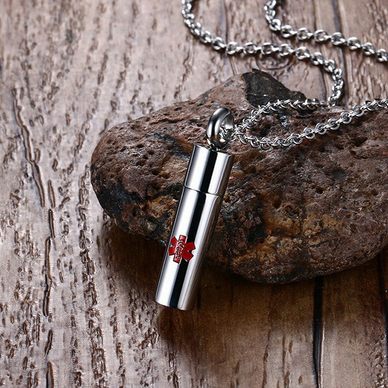 Alert the medical professionals to your special needs with this medical ID pendant. The tag in the front has a red medical symbol on it.You can engraved on the back the relevant information and an emergency contact phone number. It’s openalbe, you can put in your medical messages. Come and customize a personalized necklace for yourself or the one you love.