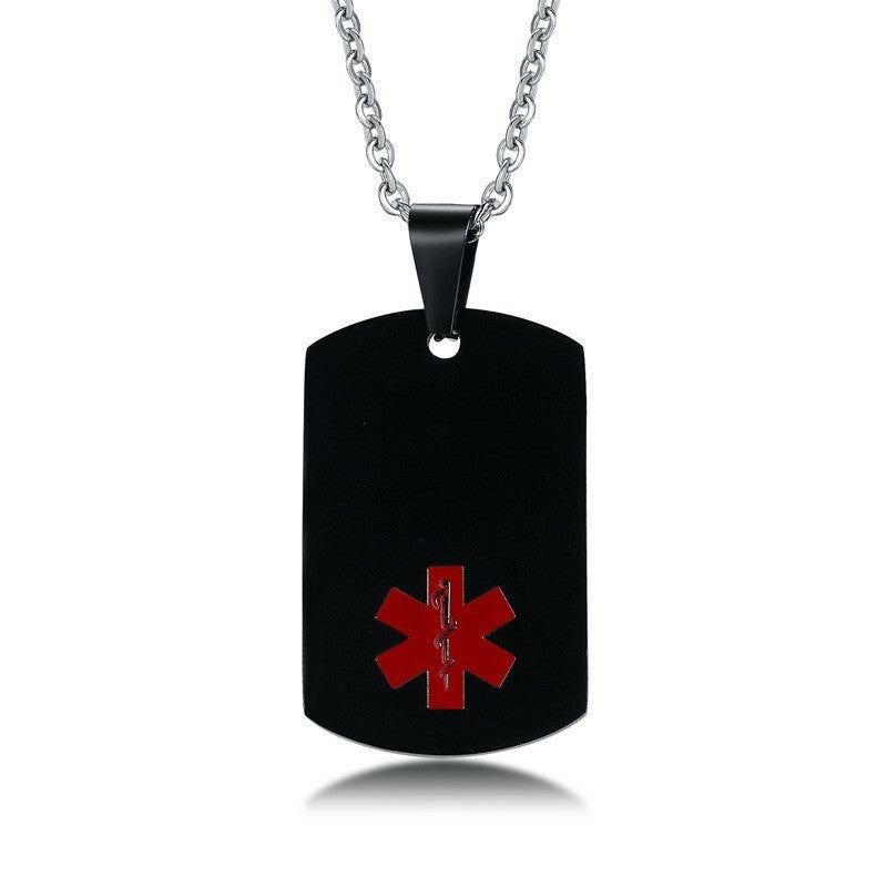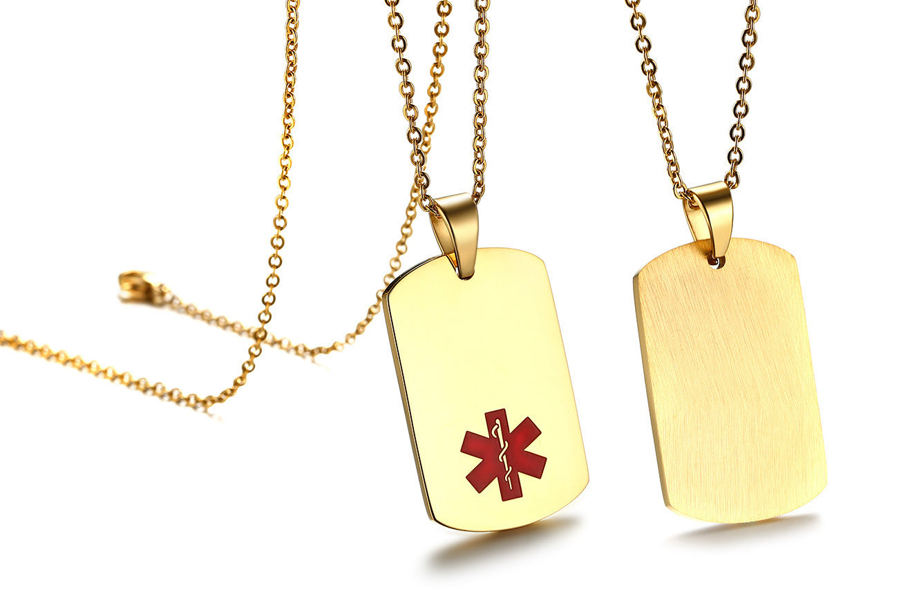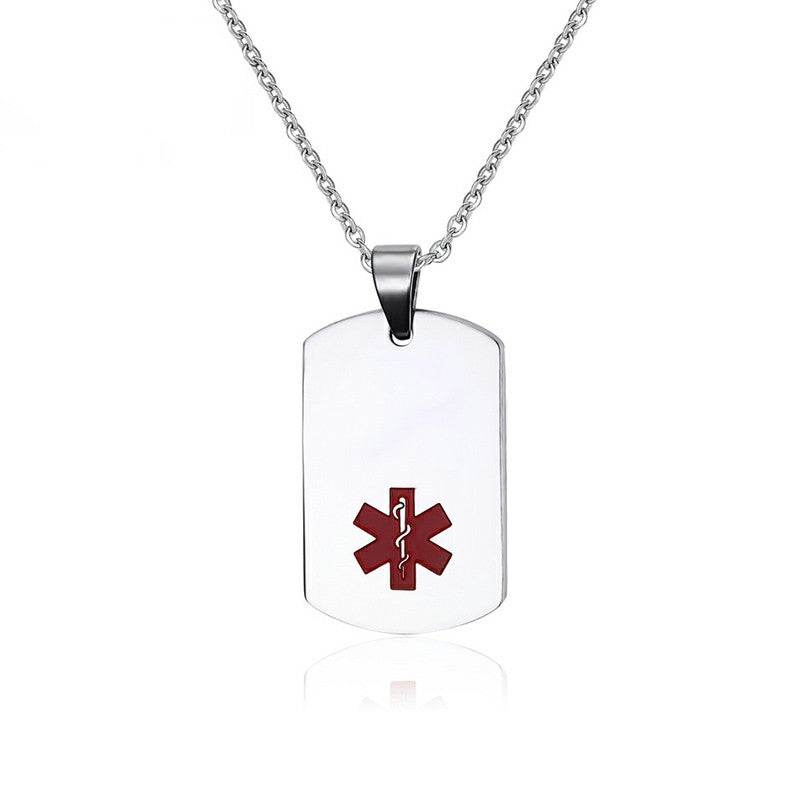 Alert the medical professionals to your special needs with this medical ID pendant. The tag in the front has a small, red medical symbol on it.You can engraved on the back and aslo the front, giving you ample space to specify your needs and emergency contact info.Come to engrave now.
