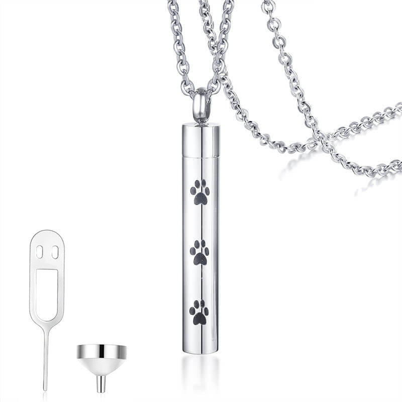 Pet Dog Cylinder Keepsake Memorial Cremation Urn Necklace Jewelry For Ashes Paw Print Pendant