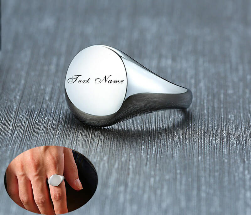 This Signet Ring with Personalized Engrave Name For Men Women Love Date Custom Jewelry is made of High Quality Stainless Steel. You can upload a file including the logo (the color only black,silver or grey) and text you design to engrave or only add the text you want to engrave on the flat top surface. Come and customize a personalized Ring for yourself or the one you love.