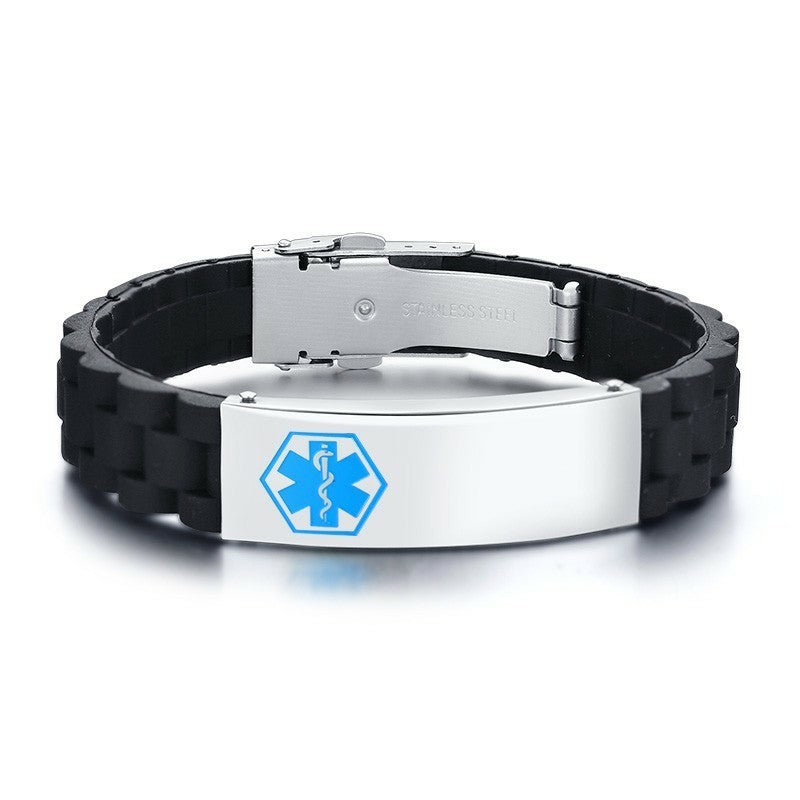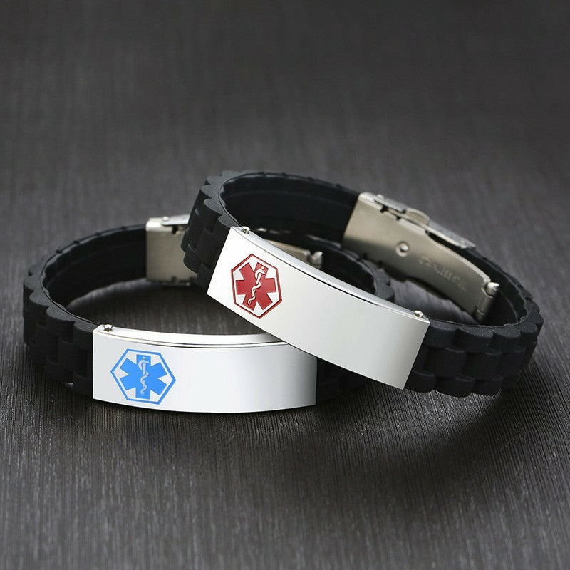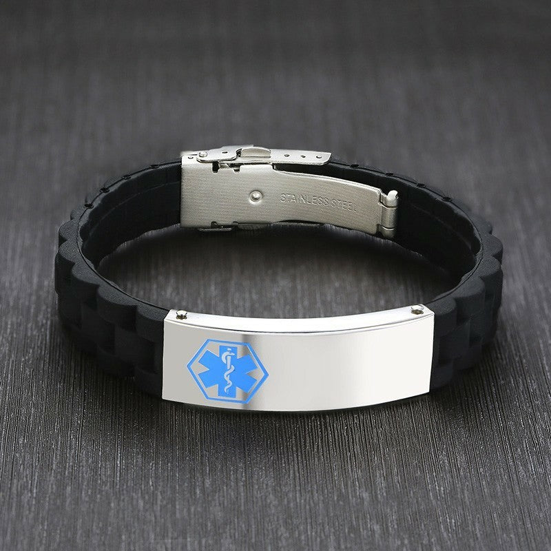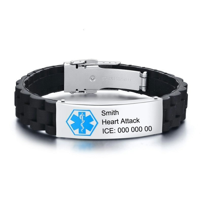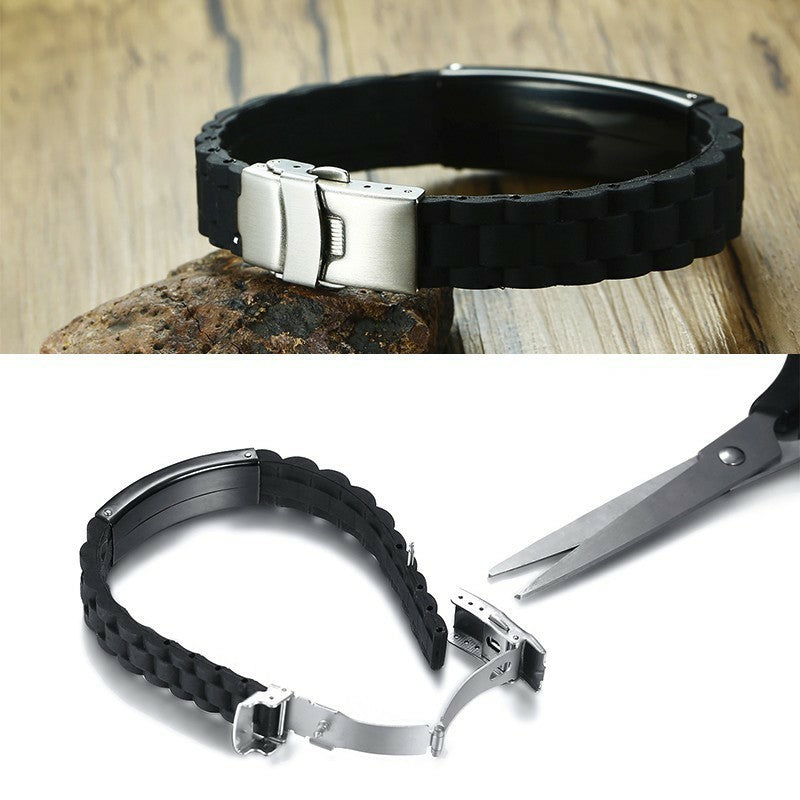 Silicone Wristband for Men Personalize Medical Alert Bracelet Stainless Steel ID Tag Bracelets