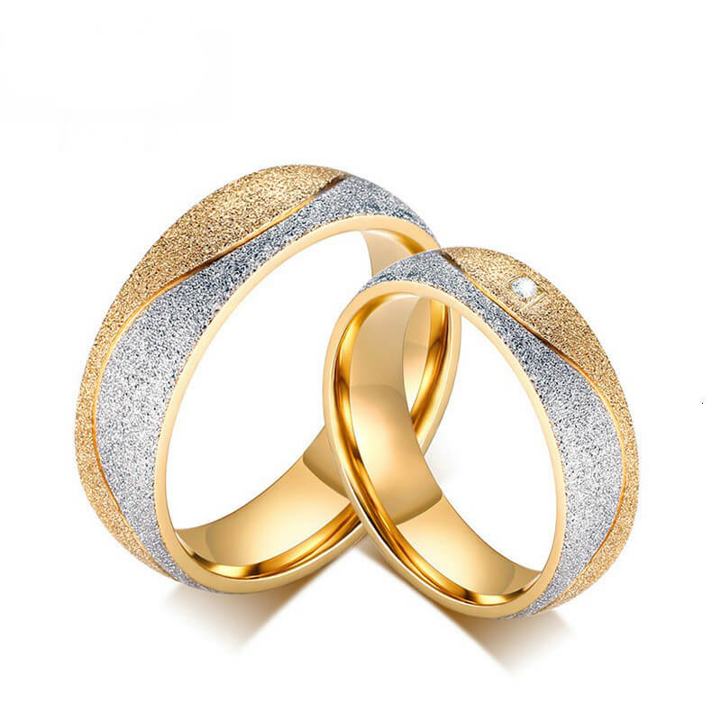 Women Men Engagement Ring Sand Blasted Gold CZ Personalized Couple Wedding Rings