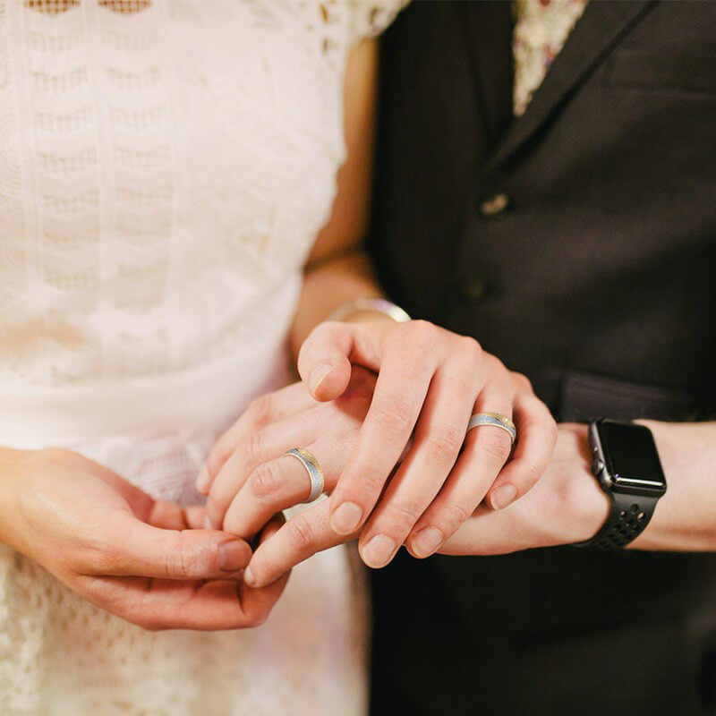 This Women Men Engagement Ring Sand Blasted Gold CZ Personalized Couple Wedding Rings is made of High Quality Stainless Steel and women’s ring is set with cubic zirconia. You can engrave with a name, phrase or date of your choosing inscribed inside the ring.