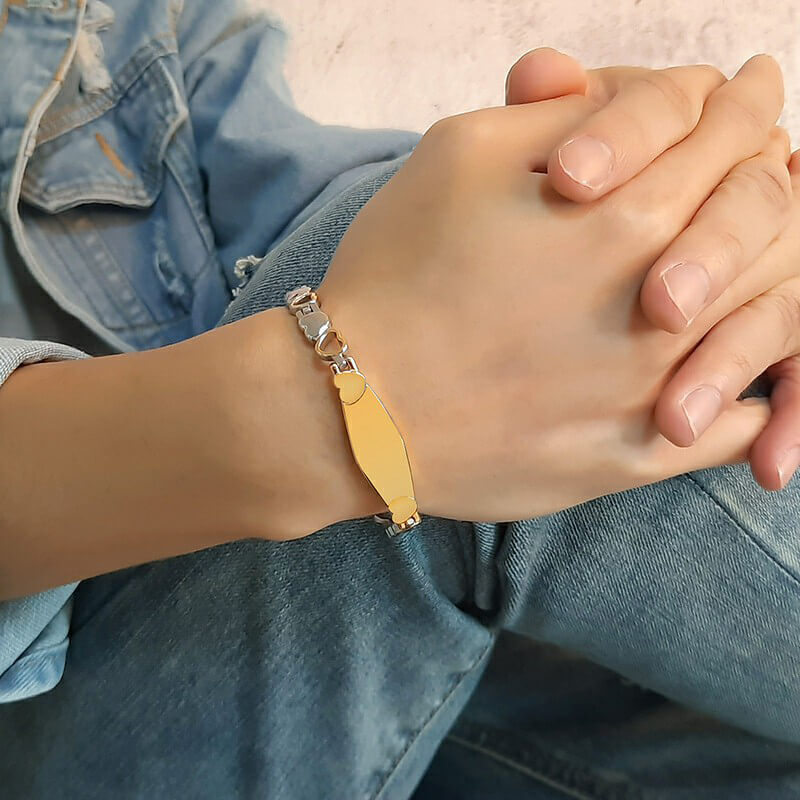 This Women Men’s Personalize ID Bar Bracelets with Heart Chain Anniversary Gifts is made of Stainless Steel. You can engrave with a name, phrase or date of your choosing inscribed on the ID Tag of the bracelet.Come and customize a personalized bracelet for yourself or the one you love.