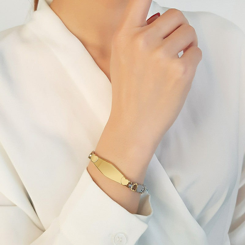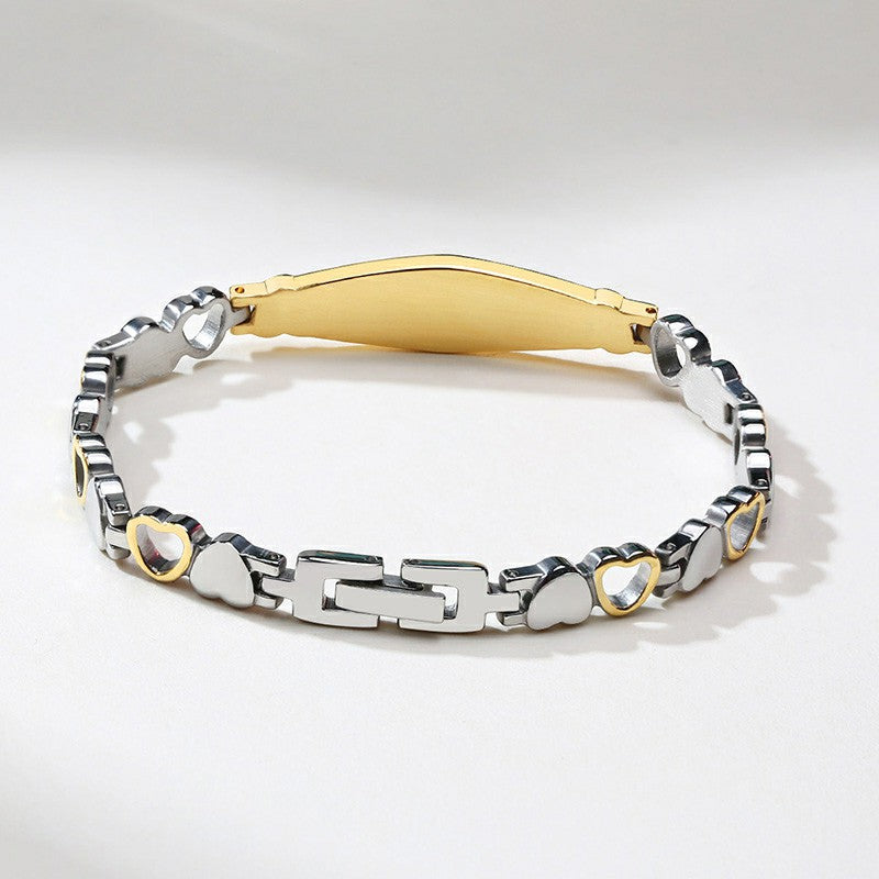 Women Men’s Personalize ID Bar Bracelets with Heart Chain Anniversary Gifts