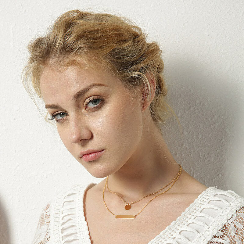 This Women’s Trendy Layer Gold ID Collar Choker Custom Name Bar Necklace Love Words is made of Stainless Steel.You can engrave with a name, phrase or date of your choosing inscribed on the bar or any words you like.Come and engrave a personalized Bar Necklace for yourself or the one you love.